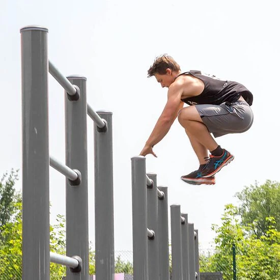Mit der Kompan Outdoor-Fitness-Station „Pull Up Pro“ lassen sich verschiedenste Übungen wie Handstand, Liegestütze, Bulgarian SplitZwischenzeit. Bezeichnet die Zeitdauer einer Strecke vom Start bis zu einem bestimmten Punkt. Dient zur Zeitkontrolle bei Sportarten, wie Laufen oder Schwimmen., Kniebeugen, Klimmzüge sowie unterschiedlichste Übungen für den Bauch oder zum Dehnen durchführen. Die vertikale Leiter dient als Stütze und sorgt für unterschiedliche Schwierigkeitsgrade. Auch dient sie als Aufstiegshilfe, um die Klimmzugstange zu erreichen.