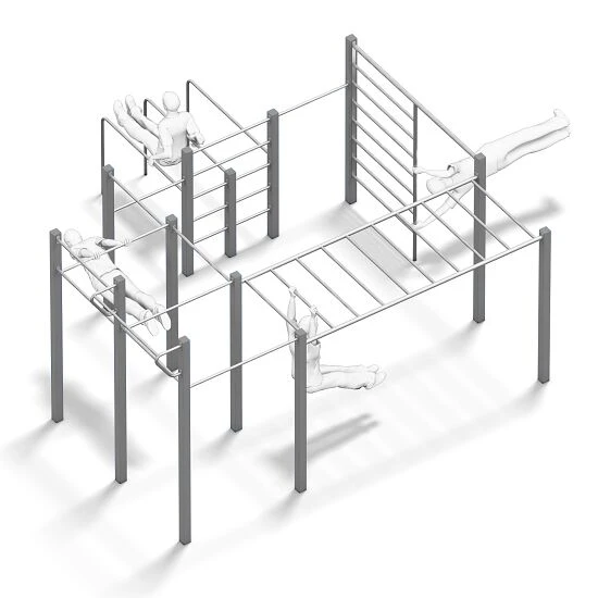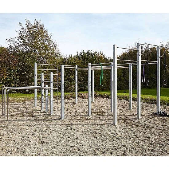 Mit dieser großen Anlage bieten Sie Fitnessfans noch mehr Möglichkeiten für ihr Calisthenics-Workout im Freien. Bestellen Sie noch heute die Playparc Calisthenics-Anlage „Allround“.