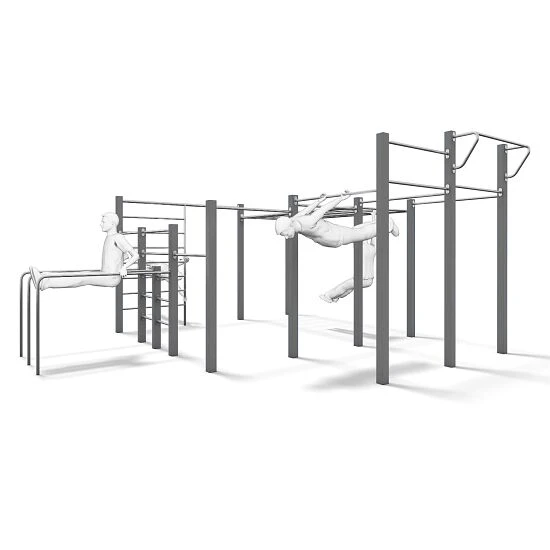 Die Playparc Calisthenics-Anlage „Allround“ ist eine Kompaktanlage, die speziell für Parks oder ausgewiesene Spielplätze gedacht ist. Die Anlage bietet aufgrund ihrer Größe eine Vielzahl an Übungen für ein abwechslungsreiches Ganzkörper-Training. Ihre Standpfosten sind aus feuerverzinktem Stahl und die Querstangen und Anbauteile sind aus Edelstahl gefertigt. Die Anlage verfügt über 3 verschiedene Umgreifstärken der Stangen, wodurch unterschiedliche Trainingsintensitäten erreicht werden. Die Playparc Calisthenics-Anlage „Allround“ entspricht den Anforderungen der DIN/EN1176 und DIN/EN16630.
