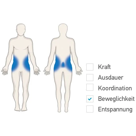 Stellen oder setzen Sie sich aufrecht auf die Drehscheibe des Saysu Twister „SE“ und umfassen Sie den Griff. Drehen Sie die Hüfte nun nach links und rechts und achten Sie darauf, die Schultern gerade und stabil zu halten.