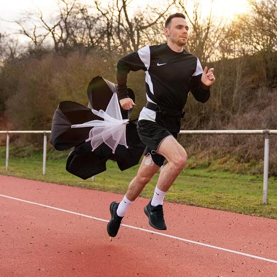 Steigern Sie Antrittsschnelligkeit und Explosivkraft Ihrer Athleten durch ein effektives Widerstandstraining. Bestellen Sie im Online-Shop von Sport-Thieme den Sport-Thieme Sprintfallschirm „Premium“.